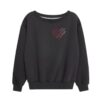 Heart-Shaped Rhinestone Off-Shoulder Sweatshirt